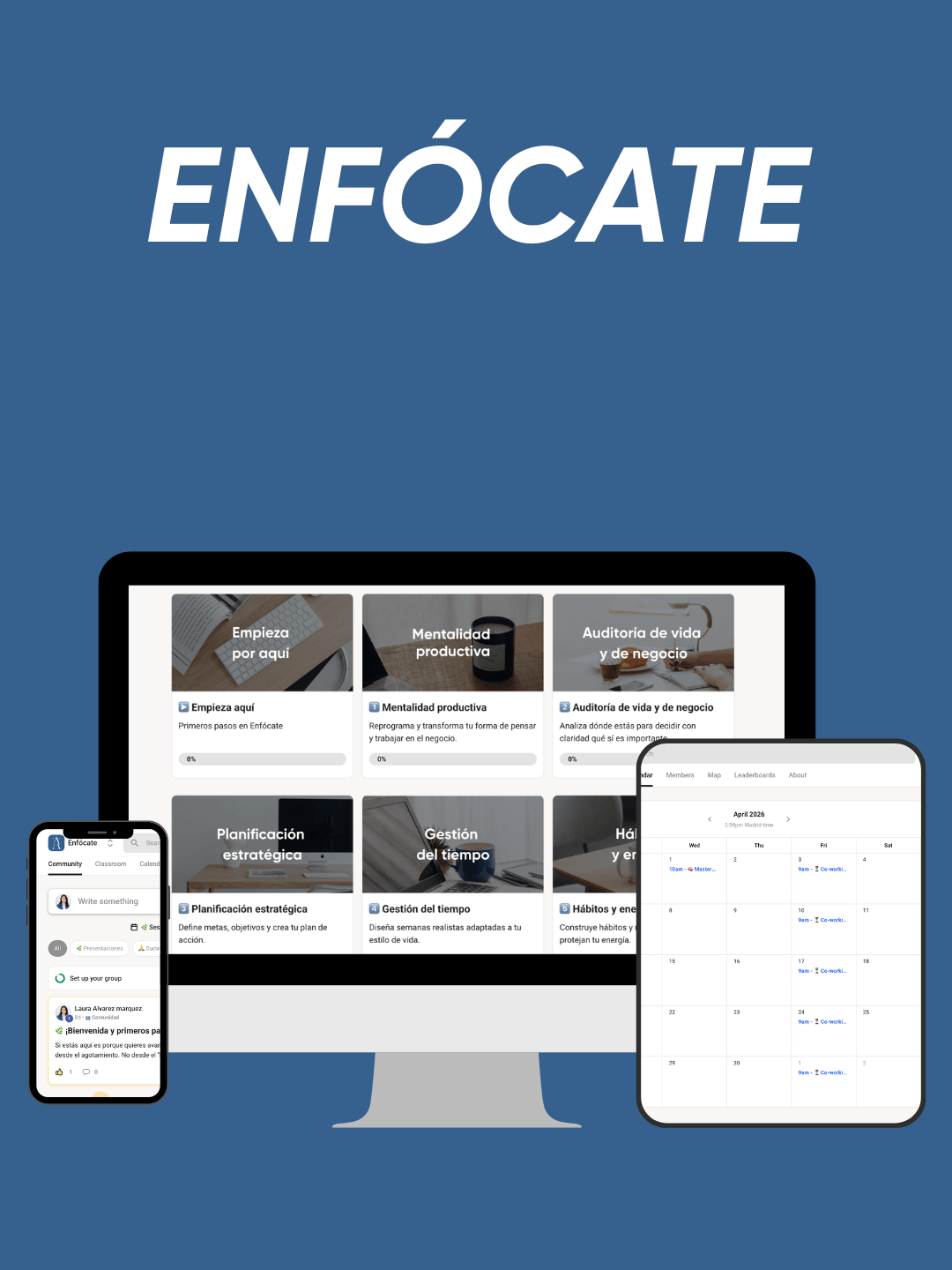 Dentro de Enfócate tendrás espacios donde resolver dudas, compartir avances y seguir ajustando tu sistema de productividad a tu realidad.
